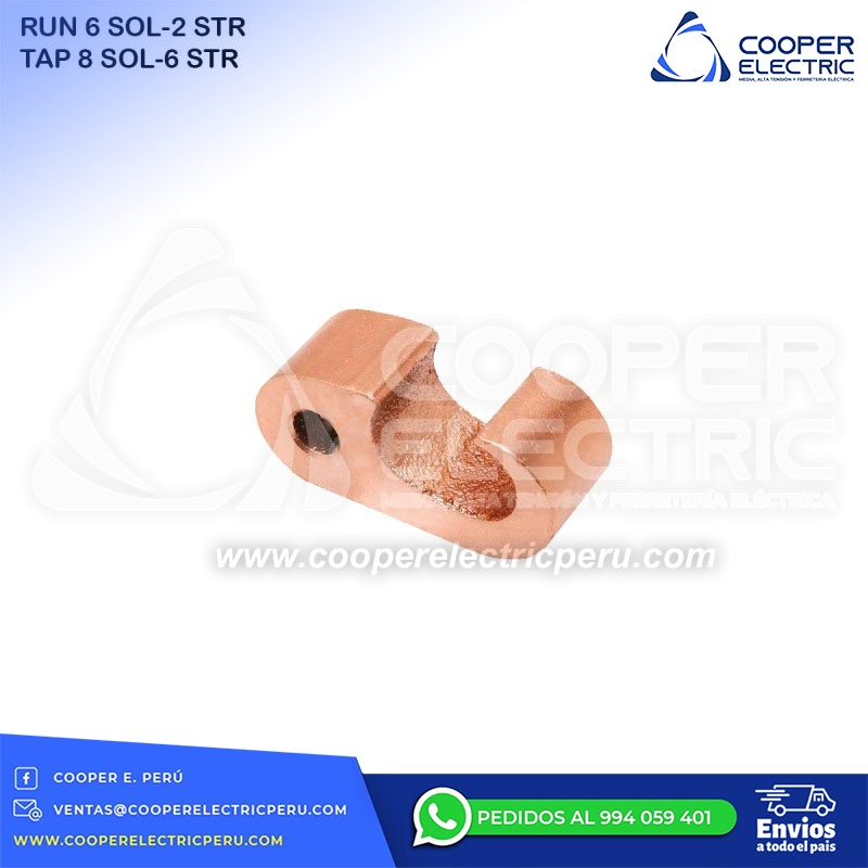 CONECTOR DE COBRE DE DERIVACION A TIERRA DE COMPRESION RUN 6 SOL-2 STR TAP 8 SOL-6 STR YGHP2C6W6W BURNDY