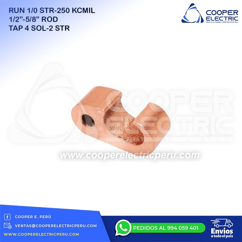 CONECTOR DE VARILLA DE TIERRA DE COMPRESION DE COBRE RUN 1/0 STR-250 KCMIL ROD 1/2´´(PULG.)-5/8´´(PULG.) TAP 4 SOL- 2 STR YGHP29C2 BUR