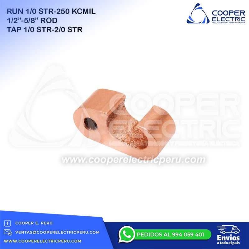 CONECTOR DE VARILLA DE TIERRA DE COMPRESION CU RUN 1/0 STR-250 KCMIL ROD 1/2´´(PULG.)-5/8´´(PULG.) TAP 1/0 STR-2/0 STR YGHP29C26 BURND