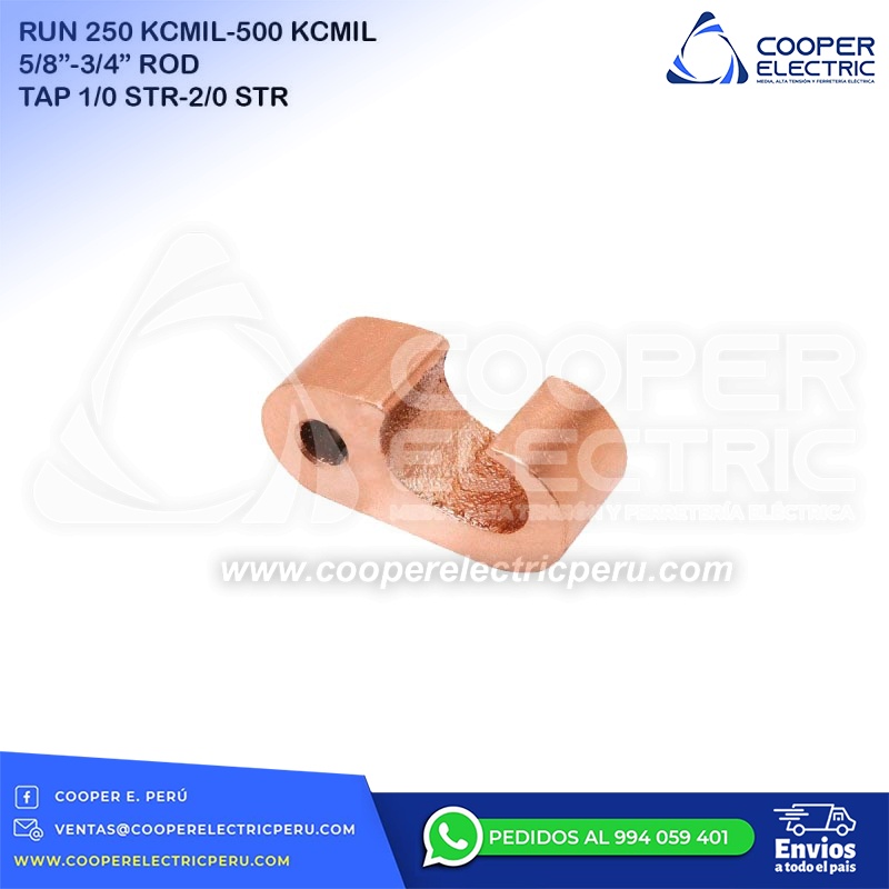 CONECTOR DE VARILLA DE TIERRA DE COMPRESION CU RUN 250 KCMIL-500 KCMIL ROD 5/8´´(PULG.)-3/4´´(PULG.) TAP 1/0 STR-2/0 STR YGHP34C26 BUR