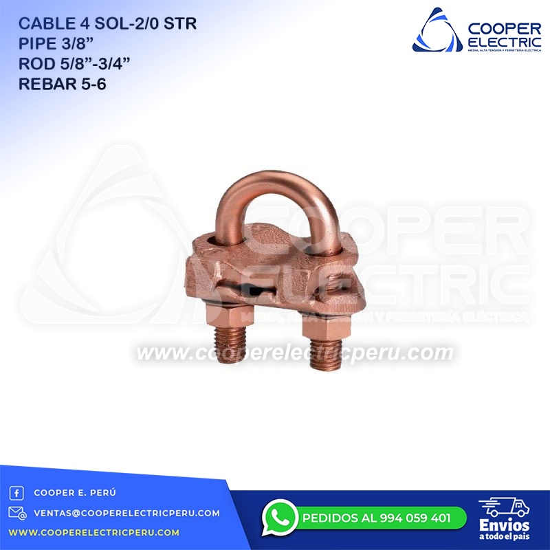 CONECTOR DE PUESTA A TIERRA MECANICO CABLE 4 SOL-2 STR PIPE 3/8´´(PULG.) ROD 5/8´´(PULG.)-3/4´´(PULG.) REBAR 5-6 GAR6426 BURNDY