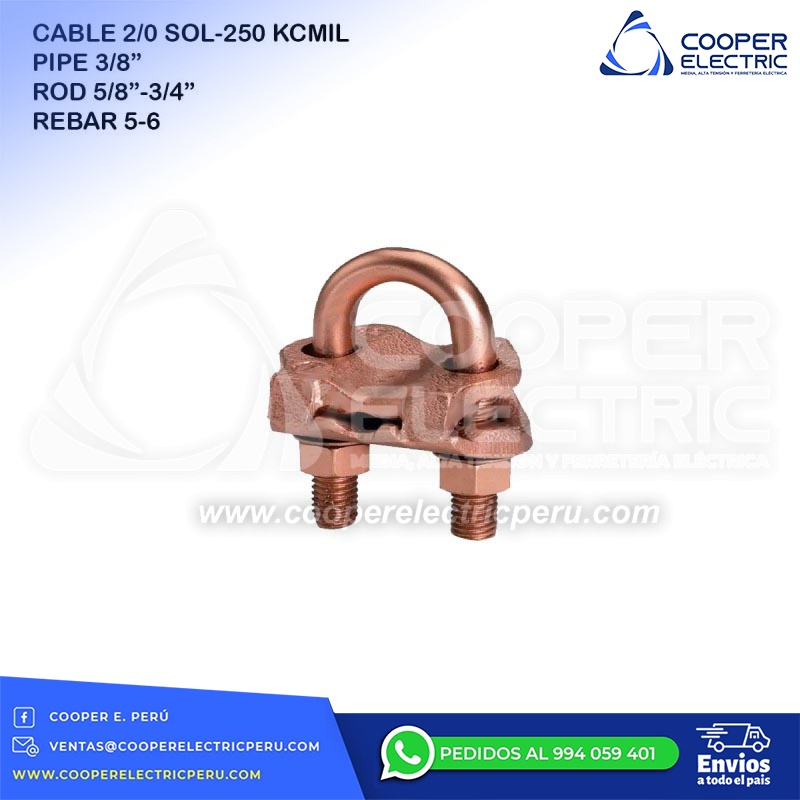 CONECTOR DE PUESTA A TIERRA MECANICO CABLE 2/0 SOL- 250 KCMIL PIPE 3/8´´(PULG.) ROD 5/8´´(PULG.)-3/4´´(PULG.) REBAR 5-6 GAR6429 BURNDY