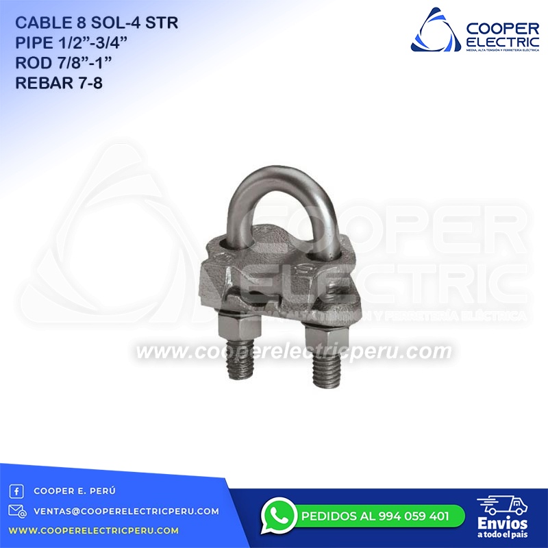 CONECTOR DE PUESTA A TIERRA MECANICO CABLE 8 SOL-4 STR PIPE 1/2´´(PULG.)-3/4´´(PULG.) ROD 7/8´´(PULG.)-1´´(PULG.) REBAR 7-8 GAR144C BURNDY