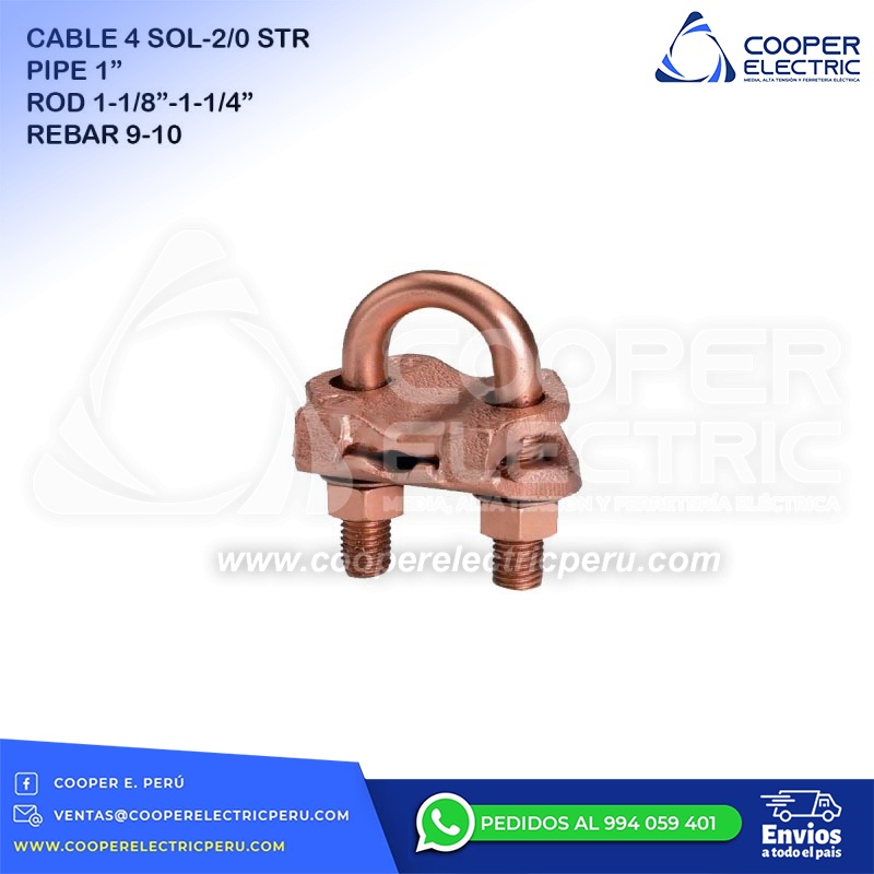 CONECTOR DE PUESTA A TIERRA MECANICO CABLE 4 SOL-2/0 STR PIPE 1´´(PULG.) ROD 1-1/8´´(PULG.)-1-1/4´´(PULG.) REBAR 9-10 GAR1526 BURNDY