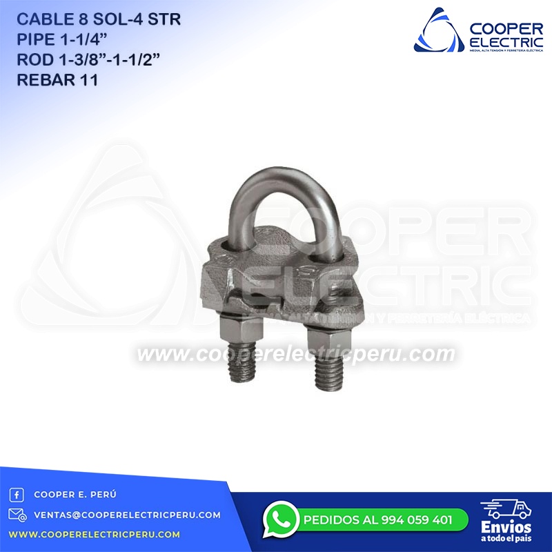 CONECTOR DE PUESTA A TIERRA MECANICO CABLE 8 SOL-4 STR PIPE 1-1/4´´(PULG.) ROD 1-3/8´´(PULG.)-1-1/2´´(PULG.) REBAR 11 GAR164C BURNDY