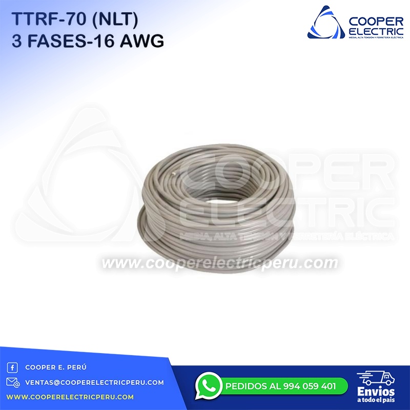 CONDUCTOR ELECTRICO TTRF-70 (NLT) 3 FASES 16 AWG INDECO