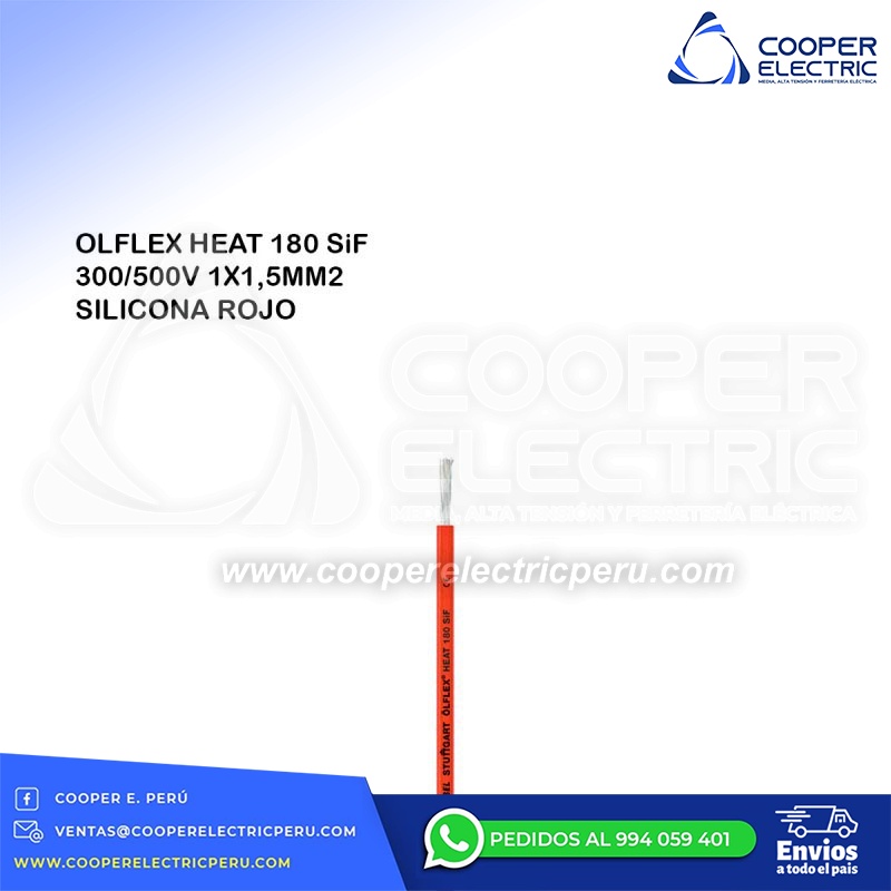 CONDUCTOR ELECTRICO OLFLEX HEAT 180 SiF 300/500V 1X1,5MM2 SILICONA ROJO LAPP KABEL