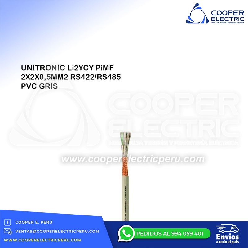 CONDUCTOR ELECTRICO APANTALLADO UNITRONIC Li2YCY PiMF 2X2X0,5MM2 RS422/RS485 PVC GRIS LAPP KABEL