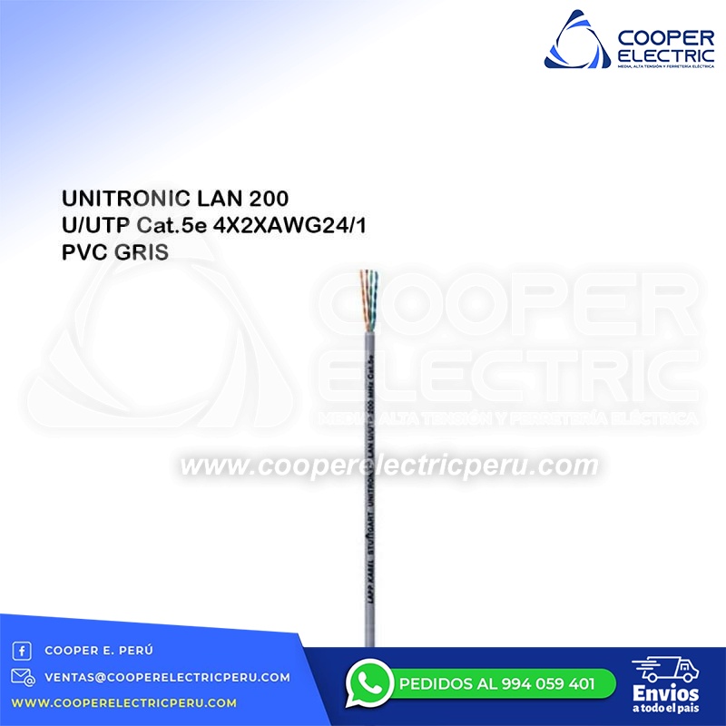 CONDUCTOR ELECTRICO UNITRONIC LAN 200 U/UTP Cat.5e 4X2XAWG24/1 PVC GRIS LAPP KABEL