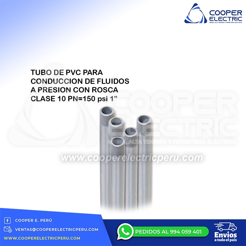 TUBO DE PVC PARA CONDUCCION DE FLUIDOS A PRESION CON ROSCA CLASE 10 PN=150 psi 1´´(PULG.) KINPLAST