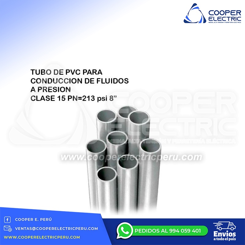 TUBO DE PVC PARA CONDUCCION DE FLUIDOS A PRESION CLASE 15 PN=213 psi 8´´(PULG.) KINPLAST