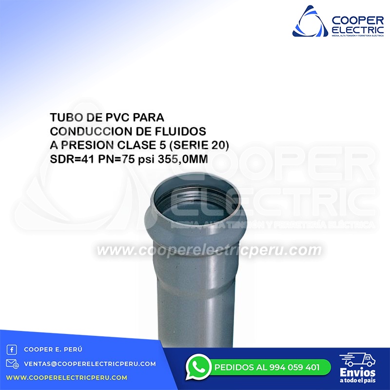 TUBO DE PVC PARA CONDUCCION DE FLUIDOS A PRESION CLASE 5 (SERIE 20) SDR=41 PN=75 psi 355,0MM KINPLAST