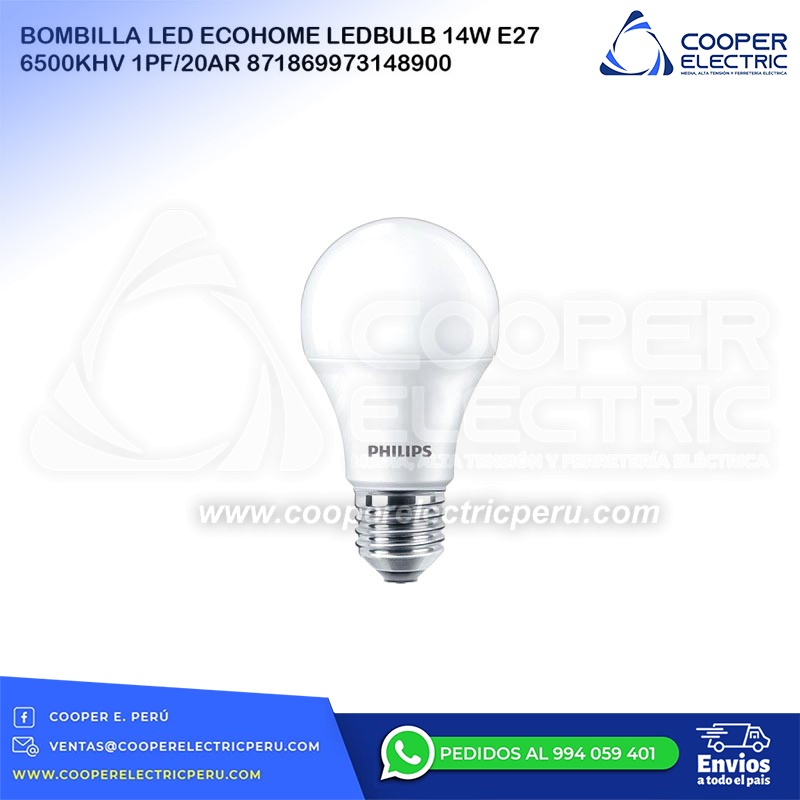 BOMBILLA LED ECOHOME LEDBULB 14W E27 6500KHV 1PF/20AR 871869973148900 PHILIPS