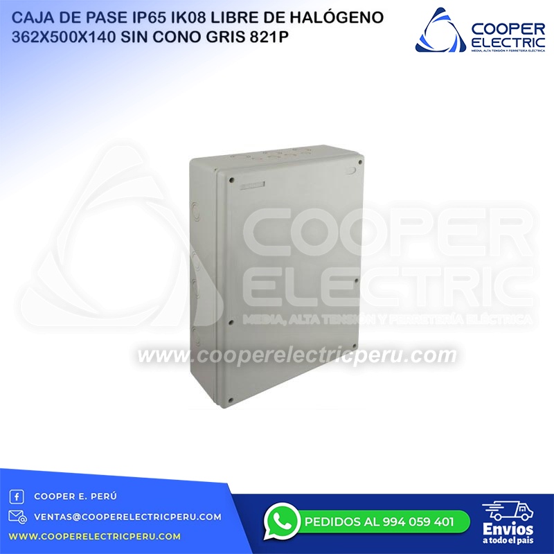 CAJA DE PASE IP65 IK08 LIBRE DE HALÓGENO 362X500X140 SIN CONO GRIS 821P SOLERA