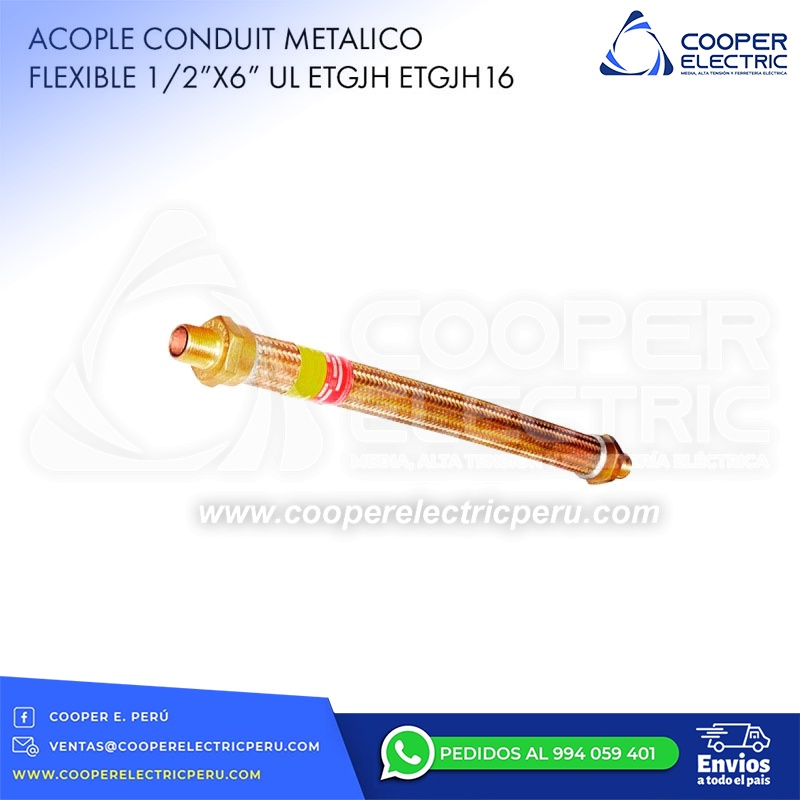 ACOPLE CONDUIT METALICO FLEXIBLE 1/2 X 6´´(PULG.) UL ETGJH ETGJH16 COPLEFLEX
