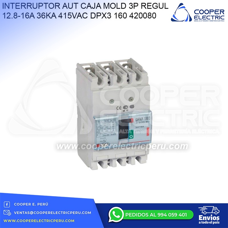 INTERRUPTOR AUT CAJA MOLD 3P REGUL 12.8-16A 36KA 415VAC DPX3 160 420080 LEGRAND