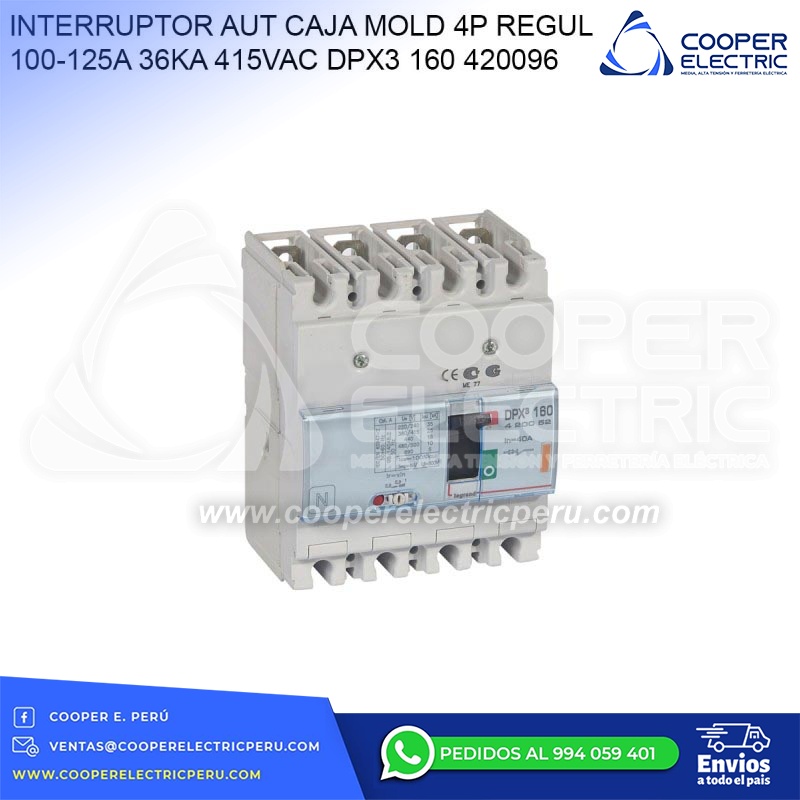 INTERRUPTOR AUT CAJA MOLD 4P REGUL 100-125A 36KA 415VAC DPX3 160 420096 LEGRAND