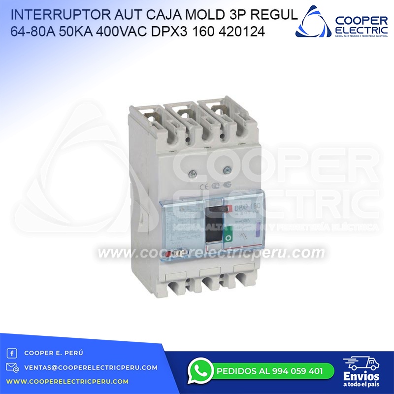 INTERRUPTOR AUT CAJA MOLD 3P REGUL 64-80A 50KA 400VAC DPX3 160 420124 LEGRAND